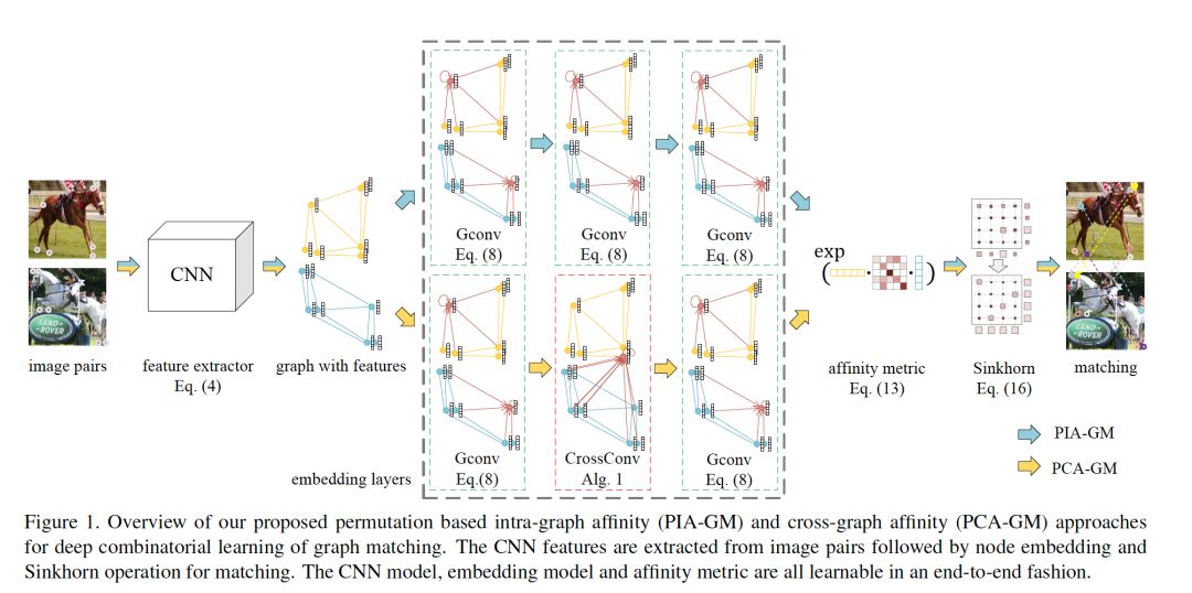 摘要:图匹配是指寻找图之间的节点对应关系,使对应的节点与边的亲和性(affinity)最大化。此外,由于NP完备性的性质之外,另一个重要的挑战是对图之间的节点和结构亲和性及其结果目标进行有效建模,以指导匹配过程有效地找到针对噪声的真实匹配。为此,本文设计了一个端到端可微的深度网络pipeline来学习图匹配的亲和性。它涉及与节点对应有关的有监督置换损失,以捕捉图匹配的组合性质。同时采用深度图嵌入模型来参数化图内和图间亲和性函数,而不是传统的如高斯核等浅层、简单的参数化形式。嵌入也能有效地捕获二阶边缘以外的高阶结构。置换损失模型与节点数量无关,嵌入模型在节点之间共享,这样网络就允许在图中使用不同数量的节点进行训练和推理。此外,我们的网络是类不可知的,具有跨不同类别的泛化能力。所有这些特性在实际应用中都受到欢迎。实验表明,该方法优于目前最先进的图匹配学习方法。