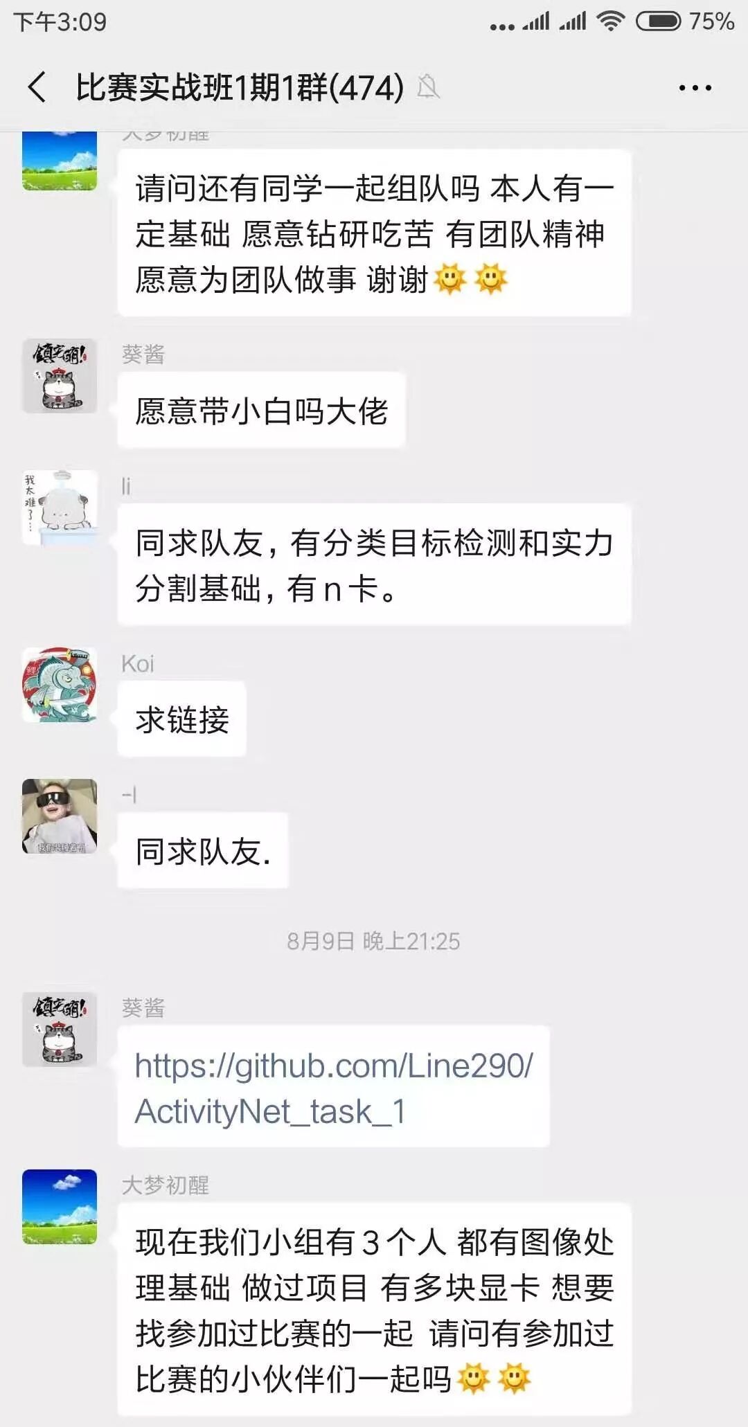 在我们的之前的比赛群里,老师和学员都非常积极的在组队及互动交流!