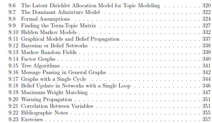 这本书主要涉及到了高维空间、SVD分解、随机游走和马尔科夫链、机器学习、大数据问题、聚类、随机图、主题模型、非负矩阵分解、隐马尔科夫模型和图模型等等当前比较热的方向,是从事数据科学研究和工作不可多得的基础书籍。