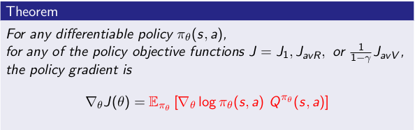 定理:对于任何可微的策略 ,对于任何策略的目标函数