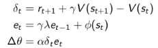 实际运用时,我们使用一个近似的TD误差,即用状态函数的近似函数来代替实际的状态函数: