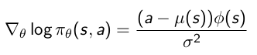 使用高斯策略时,我们通常对于均值有一个参数化的表示,同样可以是一些特征的线性代数和:
