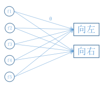 先为个体能够观测到的状态信息选定一些特征假设现在有f1-f5共5个特征,这些特征可以是人为选取的,也可以是算法计算得到的(例如可以是把观测状态信息作为输入送入神经网络得到的隐藏层数据)。向左走与其中的某些特征联系比较紧,向右走与另外一些特征关系比较紧,图中两个行为与每个特征都有联系,这种联系的紧密程度就用参数θ表示,参数θ不是一个值,而是针对每一个特征行为对都有一个具体的数值,因此它可以看成是一个矩阵,现在当环境以每个特征不同强度的形式展现在个体面前时,个体会针对向左、向右两个行为同时计算其带权重的线性代数和,假设算得向左的值为5,向右的为6。向左(右)这个行为发生的概率就与 成正比。Softmax策略下Score函数的值容易计算,可以写成如下的形式: