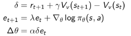 对于Critic和Actor,将TD(λ)的后向视角算法应用于实际问题时,可以在线实时更新,而且不需要完整的Episode。