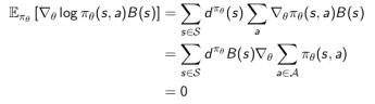 其基本思想是从策略梯度里抽出一个基准函数B(s),要求这一函数仅与状态有关,与行为无关,因而不改变梯度本身。 B(s)的特点是能在不改变行为价值期望的同时降低其Variance。当B(S)具备这一特点时,下面的推导成立: