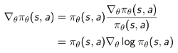 函数在某个变量θ处的梯度等于该处函数值与该函数的对数函数在此处梯度的乘积: