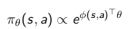 而我们采取某一具体行为的概率与e的该值次幂成正比: