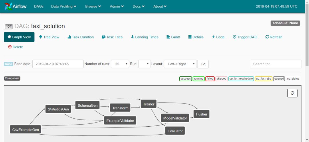 其中包含了2个示例DAG:taxi和taxi_solution,是针对芝加哥出租车数据集的两个机器学习流水线: