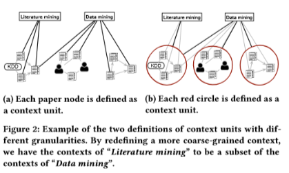 最后,利用HIN作为输入,通过Figure 4中文本粒度解决Figure 2a的DIH问题更容易,这是因为,在HIN中,可以使用explicit network结构(如按照特定节点类型分组或更复杂的结构)来定义语义文本单元。另外,也可以使用网络聚类的方法,通过改变簇的数量,在多个粒度范围内得出文本单元。