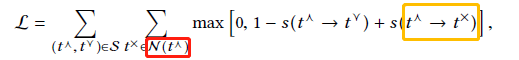 为了学习Σ和h中的参数,我们期望上位对的得分高于非下位对。因此,损失函数表示如下:
