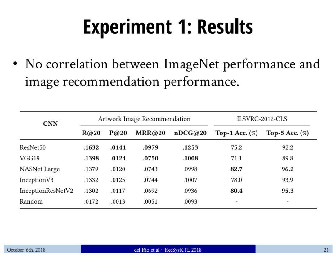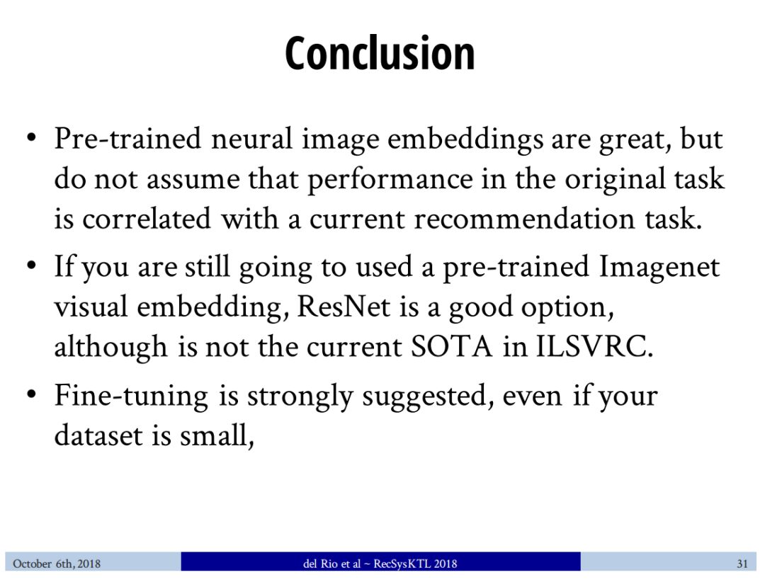 【导读】Felipe del Rio等人发表了一篇论文,阐述了ImageNet模型是否能够迁移使用图像推荐的问题。