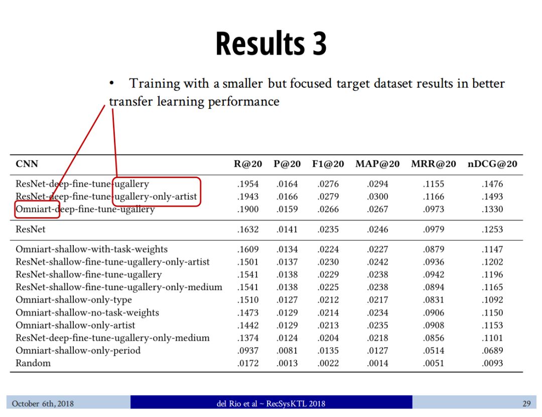 我们的结果,虽然是初步的,侧重于艺术领域,可以告知其他研究人员和从业人员如何训练他们的CNN,以便更好地在图像推荐系统进行迁移学习。