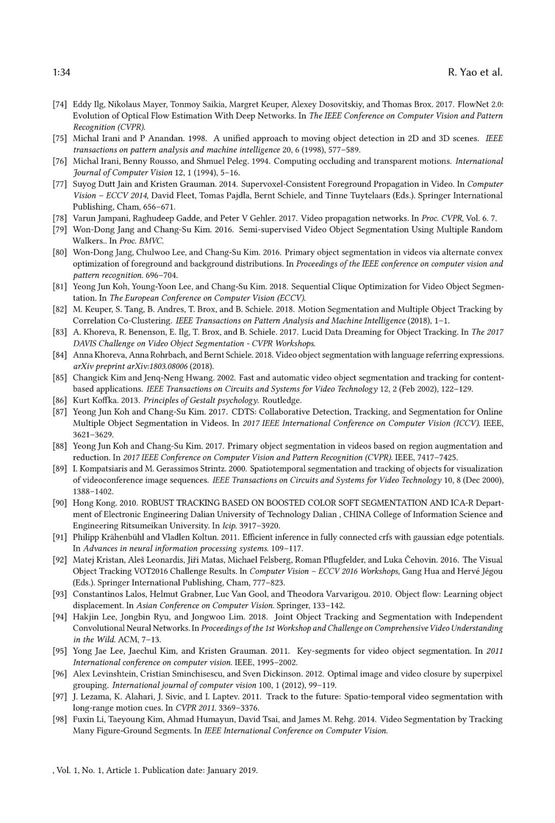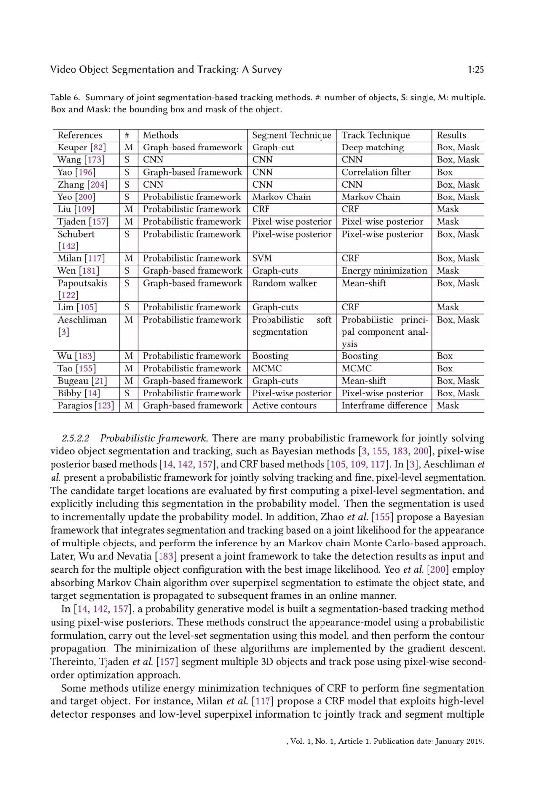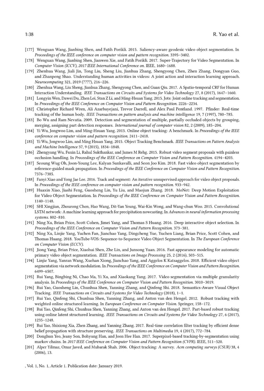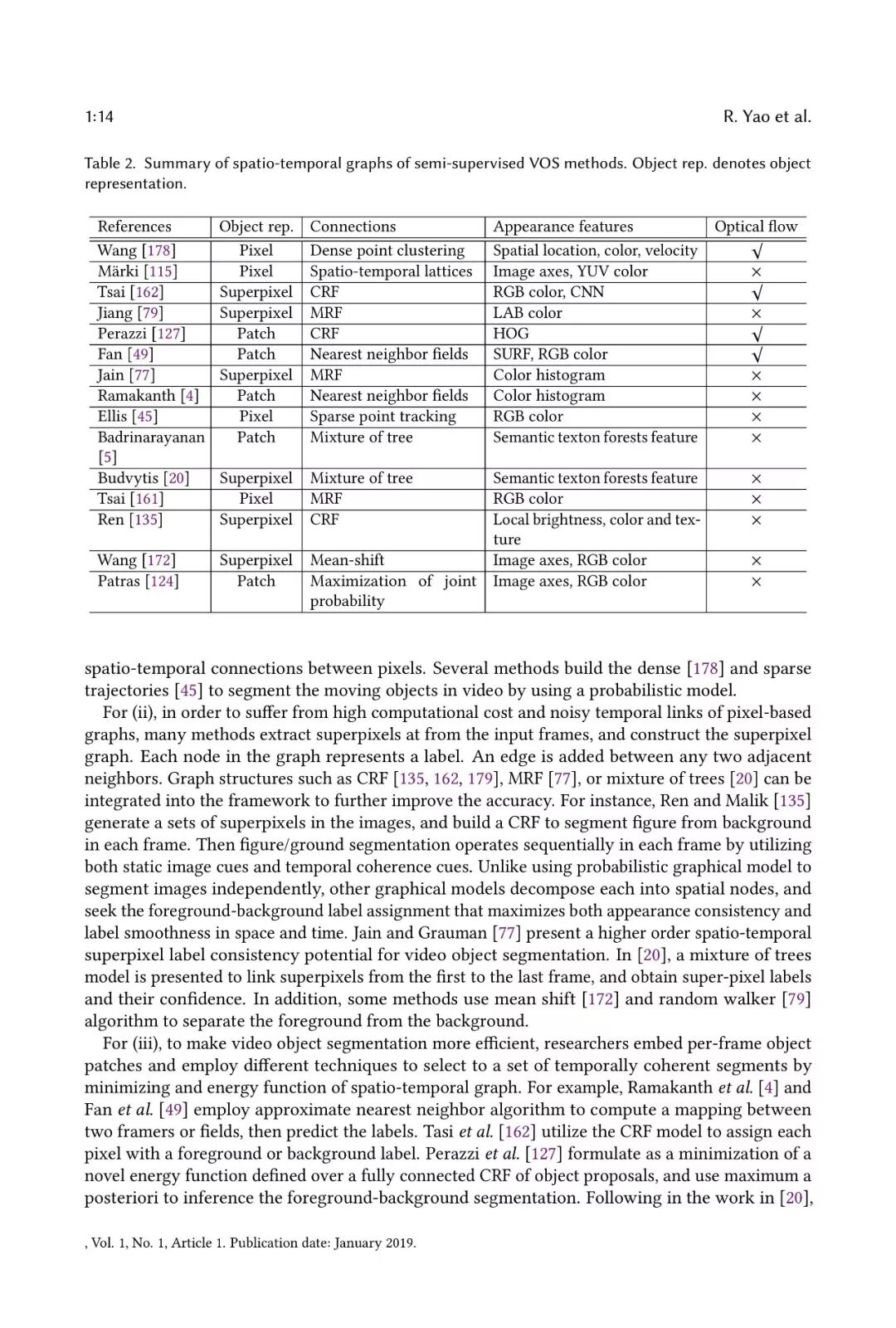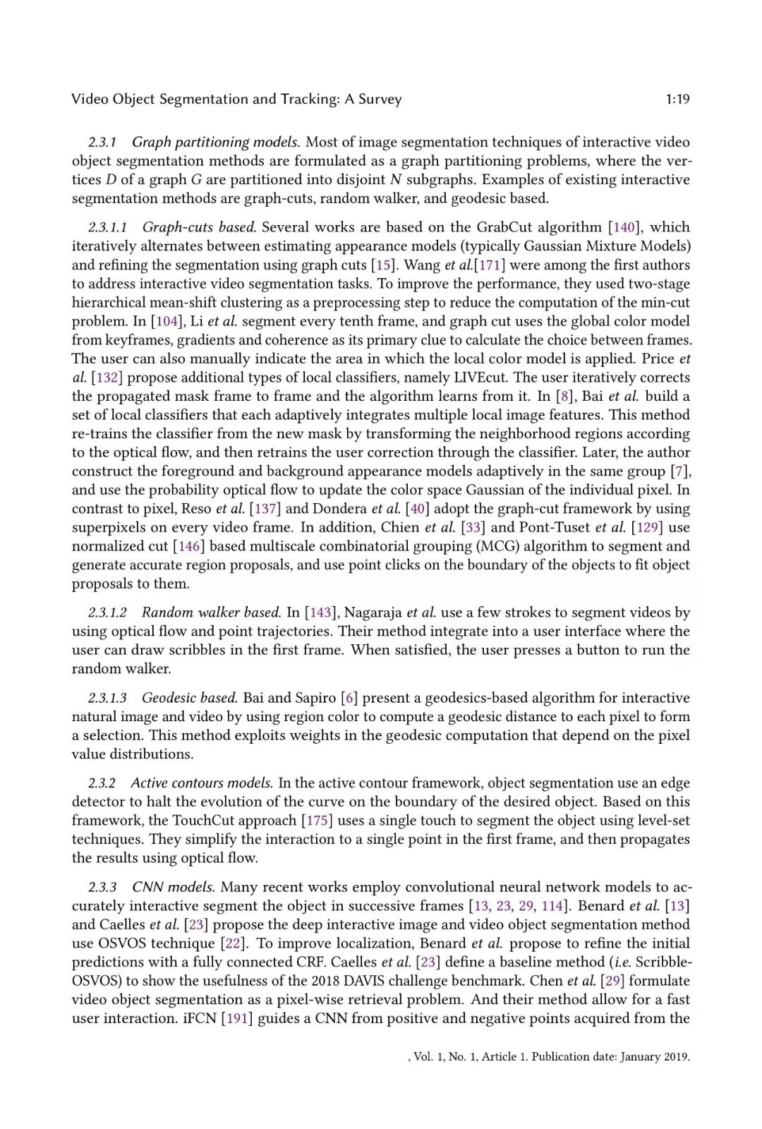 在本文中,我们首先提供了现有的分类法,包括无监督视频对象分割、半监督视频对象分割、基于分段的跟踪方法等;其次,我们讨论了不同技术方法,并总结了相关视频数据集,同时整理了各种评估指标;最后,讨论了此类任务未来的发展方向。