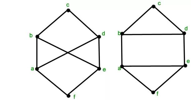 这是为什么呢?这就不得不提到图本身的一些性质了。我们都知道,在欧氏空间中,如果一张图片旋转了,那么形成的新图片就不再是原来那张图片了;但在非欧式空间的图上,如果一个图旋转一下,例如对它的结点重新编号,这样形成的图与原先的图其实是一个。这就是典型的**图重构(Graph Isomorphism)**问题。比如下面左右两个图,其实是等价的: