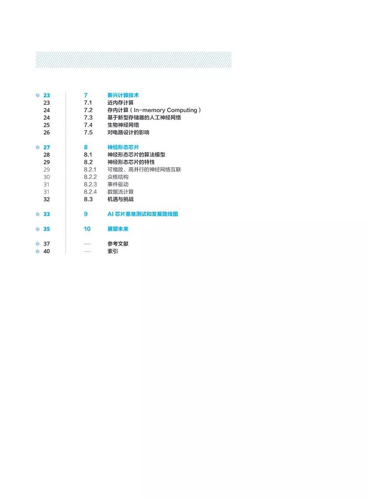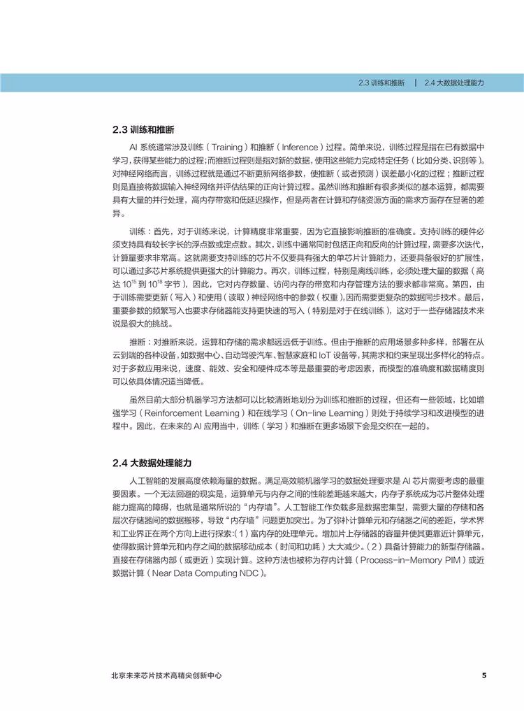 整个《白皮书》总共分为10个章节,第一章节首先对芯片发展的背景做了一个交代,然后从多个维度介绍了AI 芯片的关键特征,在第三章介绍了AI芯片的发展现状;第四章从冯·诺伊曼瓶颈和CMOS工艺以及器件瓶颈分析了AI芯片的技术挑战。