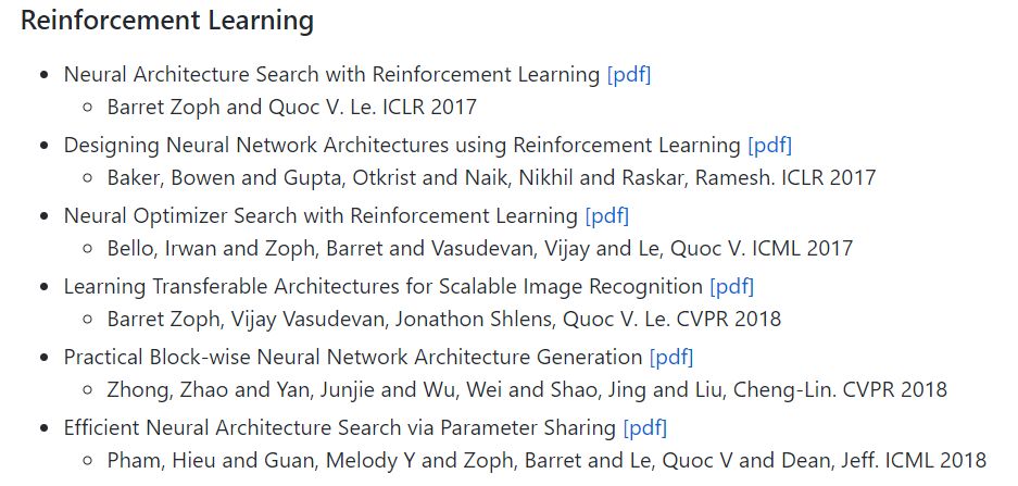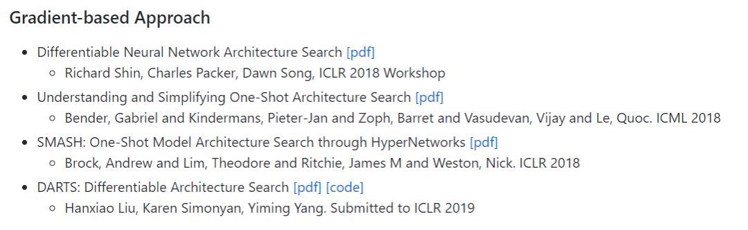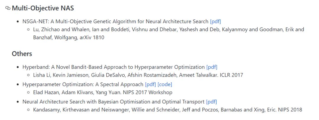 本文来自于GitHub上的D-X-Y用户整理的awesome-NAS列表,文档内容包括: