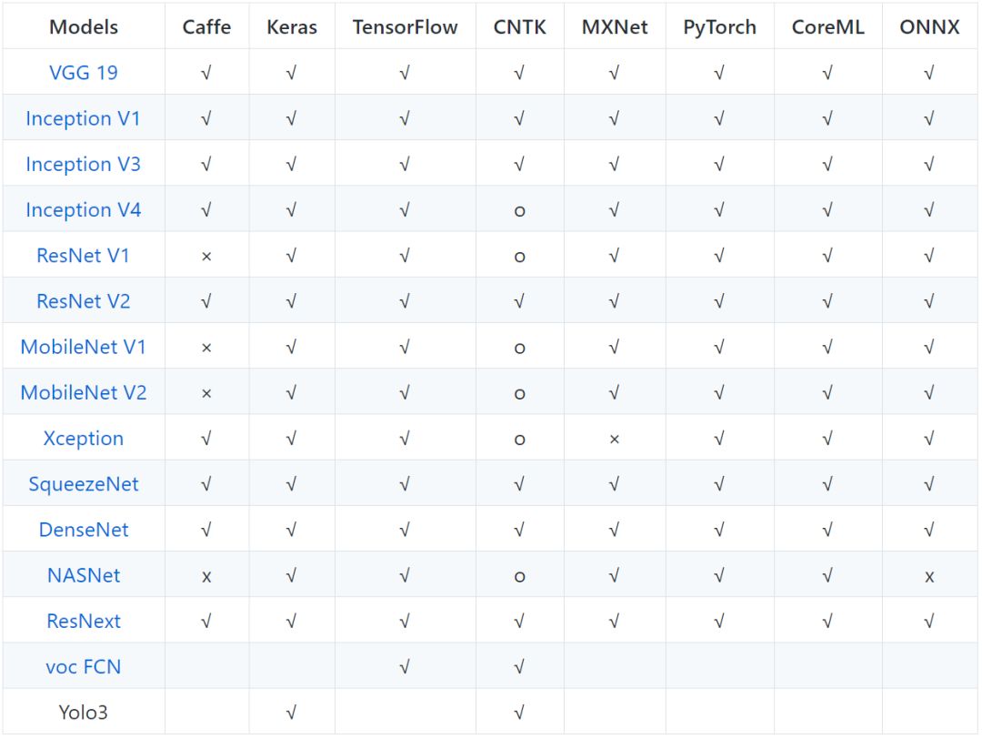 • Keras "inception V3"转换为CNTK模型:https://github.com/Microsoft/MMdnn/blob/master/docs/keras2cntk.md