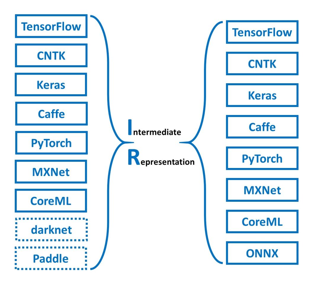 在工业街和学术界中,开发者或者研究人员可以选择多种深度学习框架来构建模型,每种框架有自己特有的网络结构定义以及模型保存格式,这种框架之间的鸿沟阻碍了不同框架模型之间的操作。MMdnn是微软开源的用于不同深度学习框架(Caffe, Keras, MXNet, Tensorflow, CNTK, PyTorch Onnx和CoreML)的模型之间互相转换的工具,通过模型的中间表示来完成不同框架模型之间的转换。其代码被托管在微软的Github中:https://github.com/Microsoft/MMdnn。