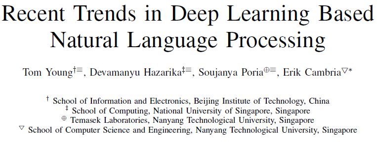 题目: Recent Trends in Deep Learning Based Natural Language Processing