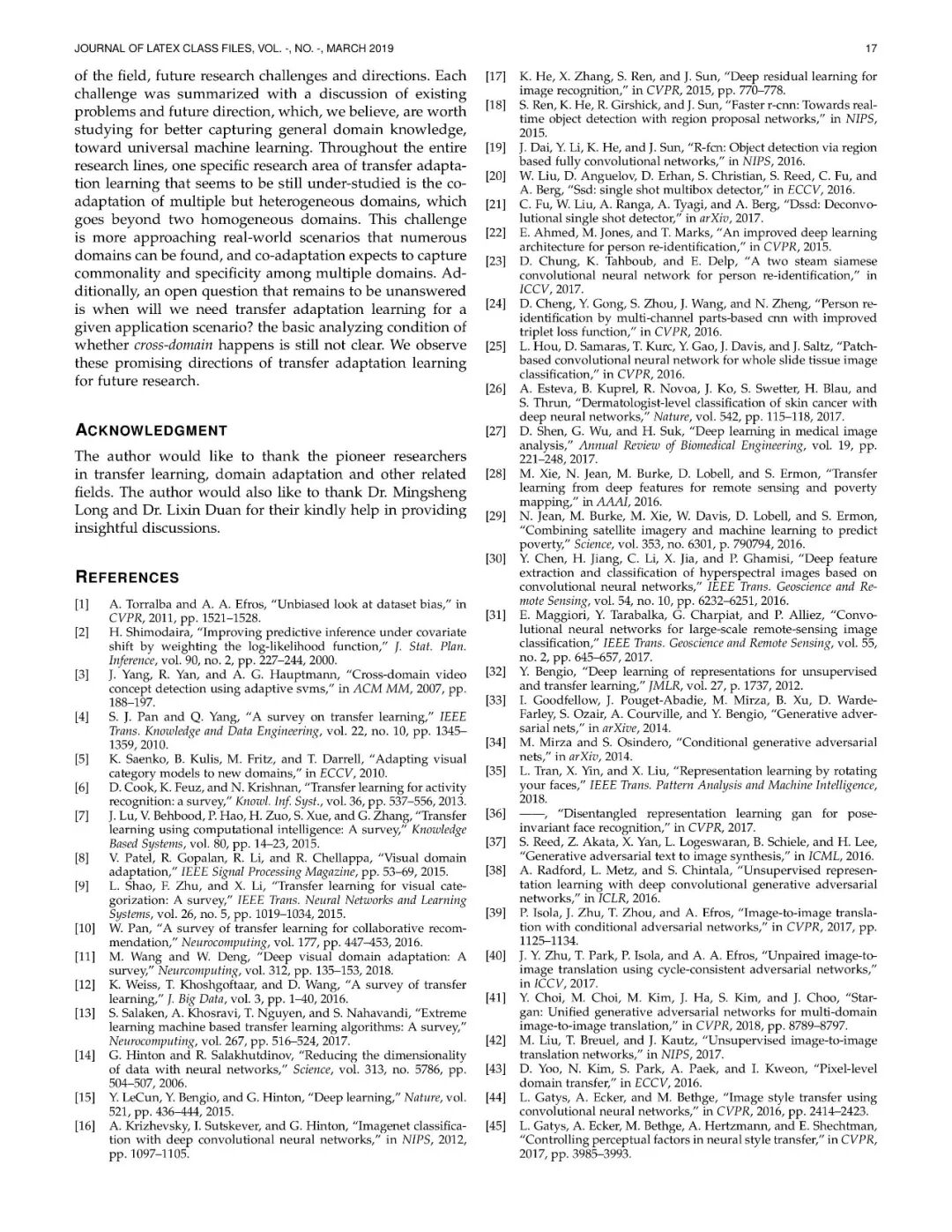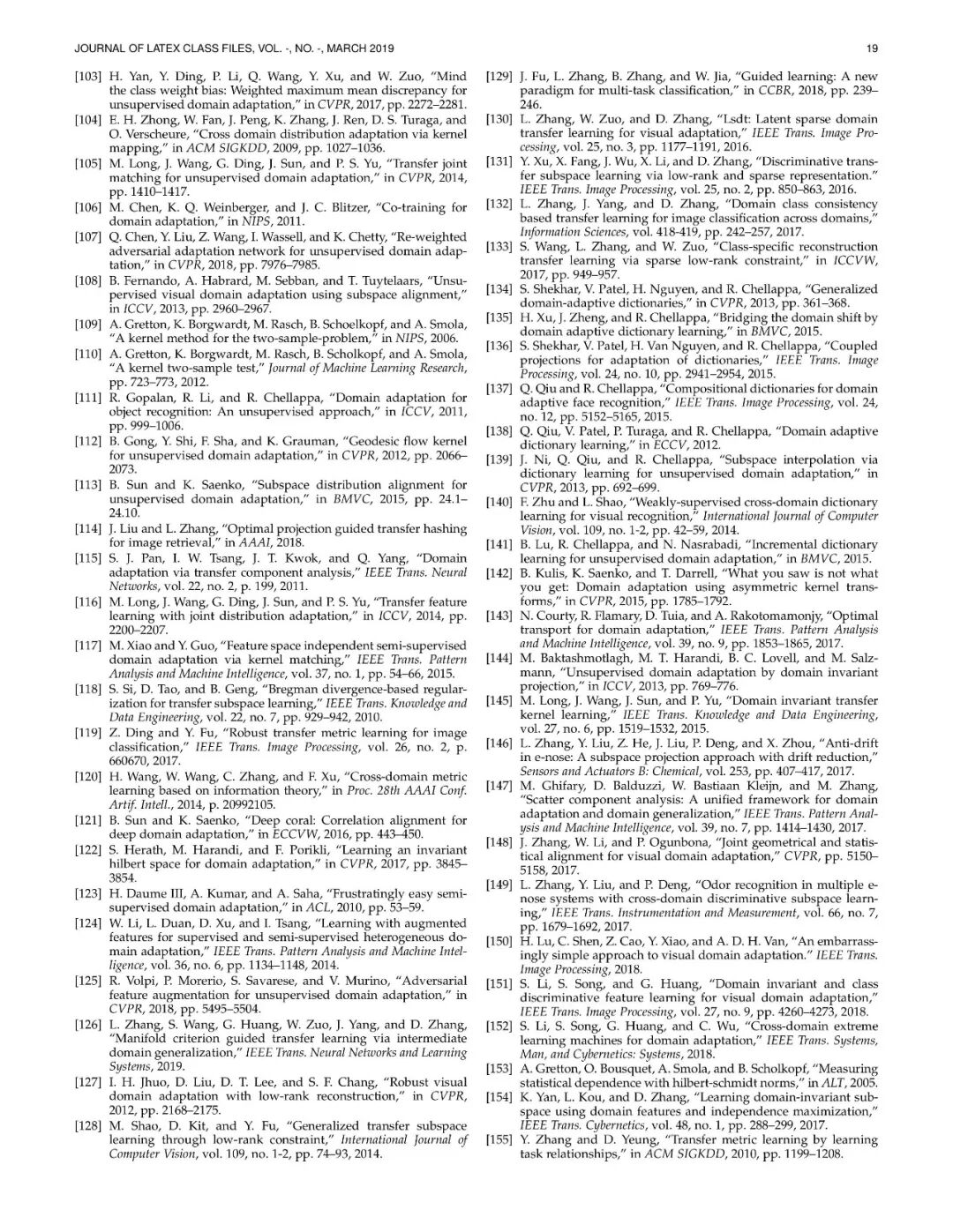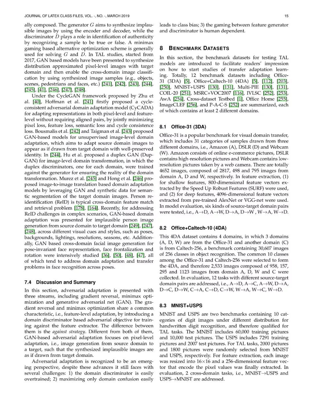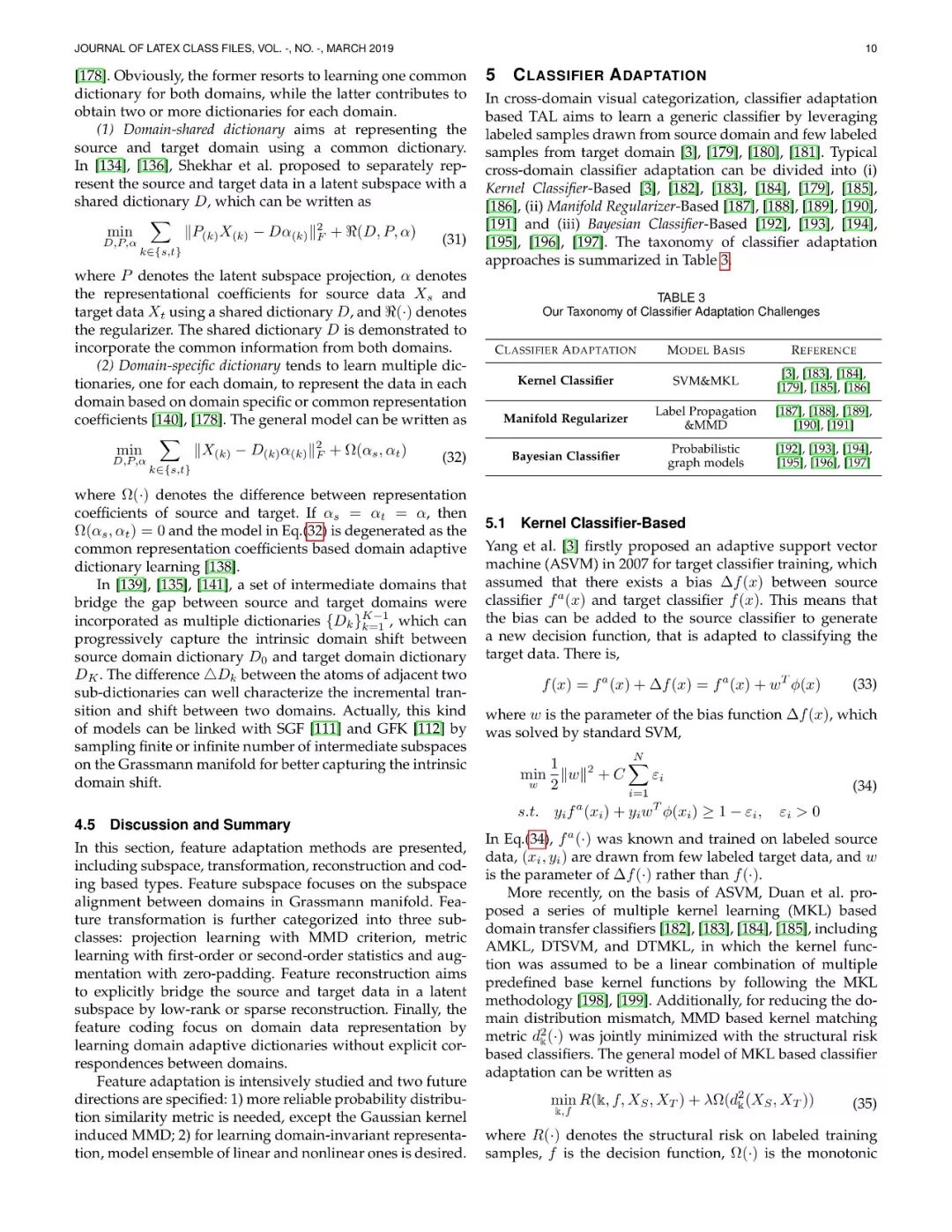 • 分类器适应。由于目标域的移位问题,对源域样本进行训练的分类器通常都是有偏差的。从多个域中学习可以用于其他不同域的通用分类器是一个非常具有挑战性的主题。