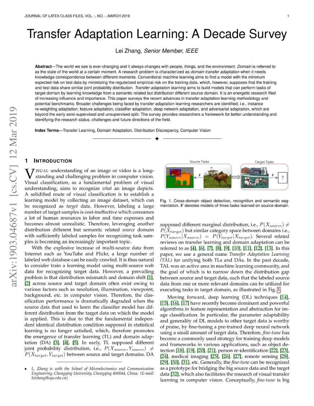 人类眼中的世界是时刻变化的,特别是不同“域”(domain)之间的状态、事物、人员等。这里的“域”指的是某一刻的世界状态。由于对两个时刻不同知识的协作处理需求,因此产生了域迁移自适应(domain transfer adaptation)这一领域。传统的机器学习方法,主要目标是通过对训练数据进行经验风险最小化学习,找出令测试数据期望风险最小化的模型,并在这一过程中假设,训练数据与测试数据共享了相似的联合概率分布。迁移自适应学习目标是构建一个可以处理来自不同概率空间的“源域”与“目标域”的模型,这是一个非常有前景的领域,并逐步吸引了更多研究者。