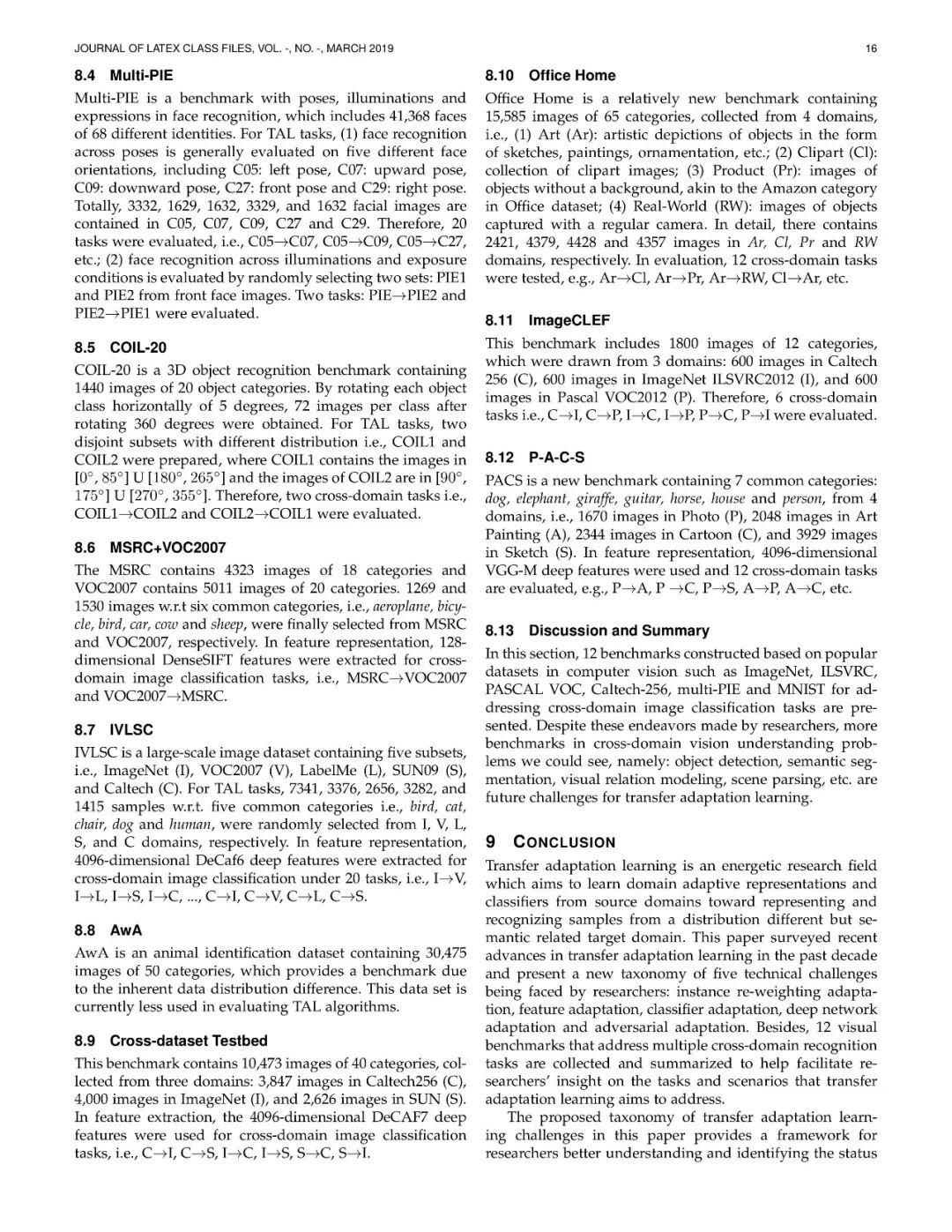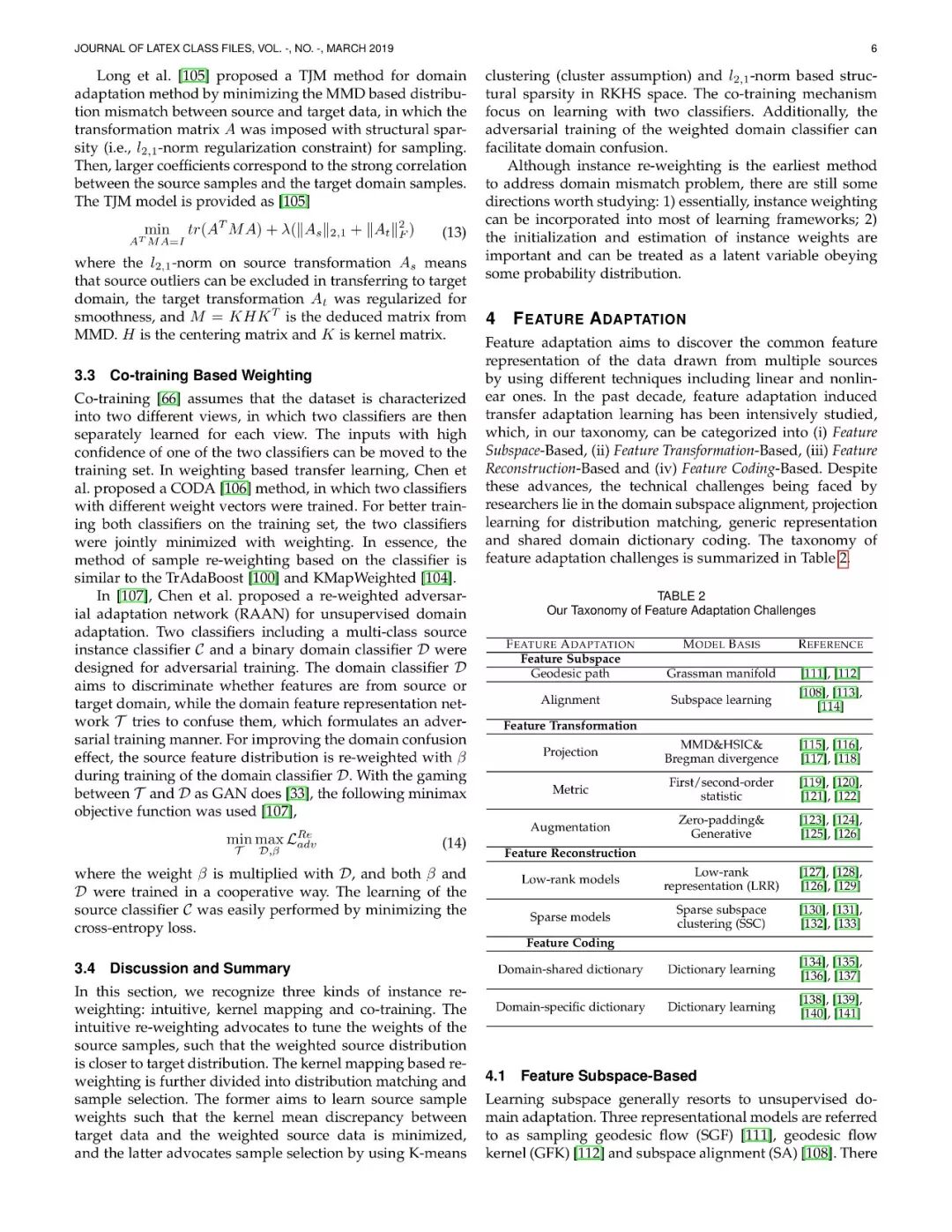 本文分别针对以上5个挑战,从多个维度进行了梳理,包括:弱监督学习观点、Instance Re-weighting Adaptation、特征适应、分类器适应、深度网络适应、对抗适应、基准数据集等内容。