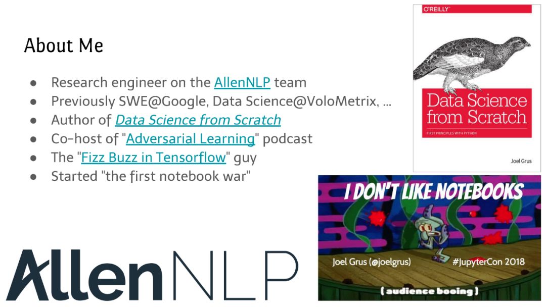【导读】作为研究性工程师,工作中需要需要设计很多复现的任务。AllenNLP 工程师Joel Grus介绍了为什么用notebook来复现代码不是一个明智决定的原因,以及如何领AllenNLP工具来帮助我们的复现工作。