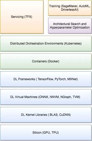 首先,问题是:“为什么我们需要标准?”标准是与互操作性(interoperability)相关的。所以在深度学习的语境中,什么是互操作性的意义,以及我们如何能得到更大的互操作性?自2012 年开始,深度学习的技术栈已经变得越来越引人注目了。