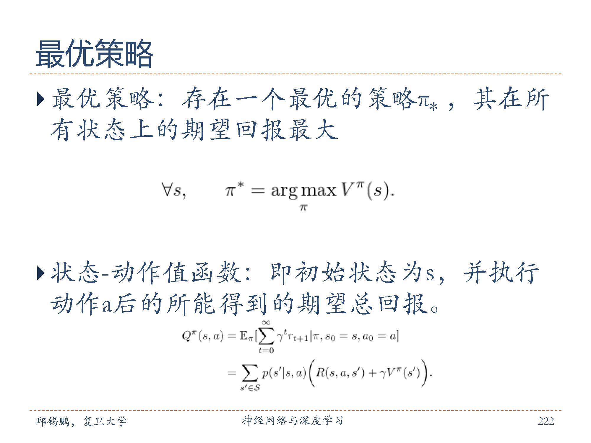 如图中公式所示,最优策略 π∗对应的值函数称为最优值函数。