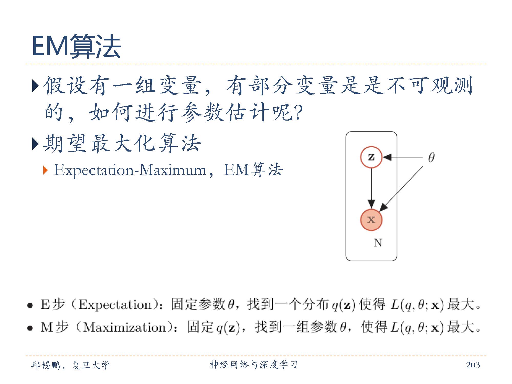 2. M步( Maximization):固定 q(z),找到一组参数θ,使得 L(q, θ; x)最大。