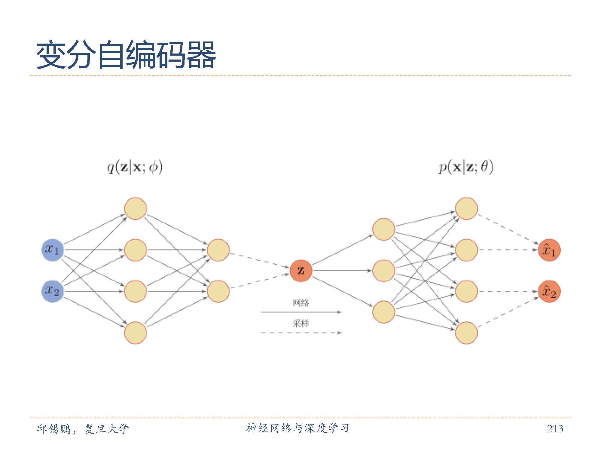 图中给出了变分自编码器的神经网络结构示例。