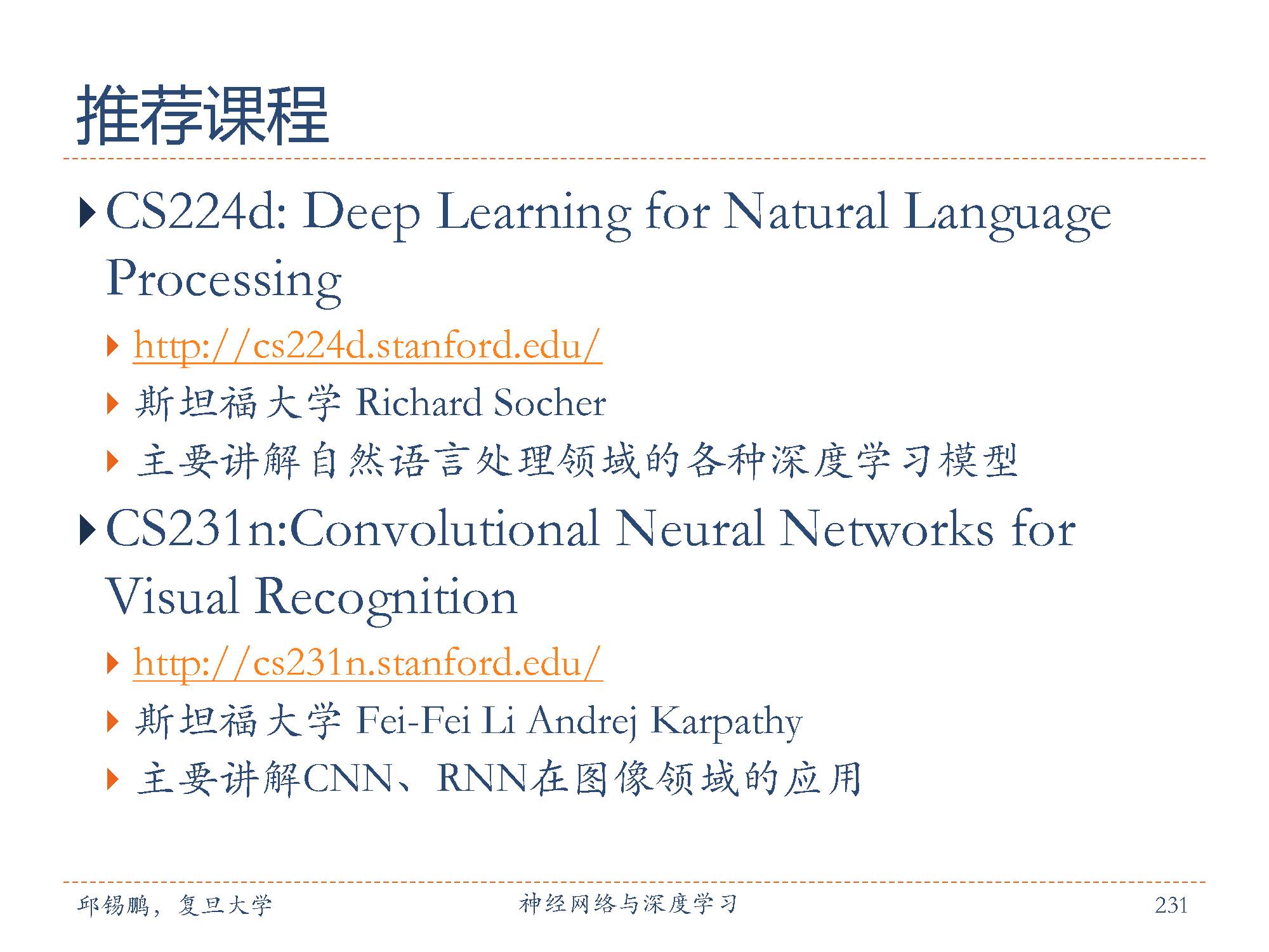 这里邱老师也推荐了一些深度学习和神经网络的课程,如图所示。