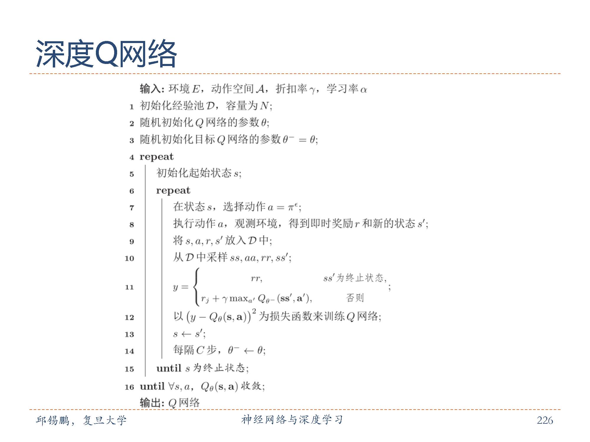 其中, s和 a 分别是状态s和动作a的向量表示;函数Qθ(s, a)为深度神经网络,参数为θ,输出为一个实数,称为Q网络( Q-Network)。