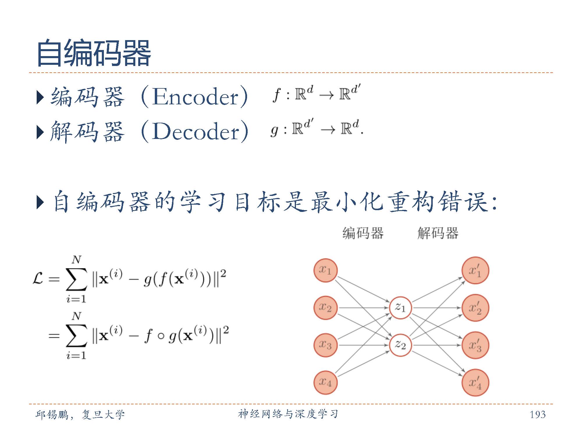 自编码器的目标是通过调整参数,使重构误差最小。