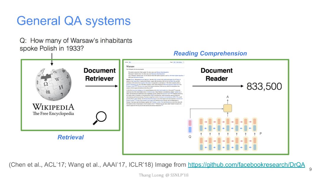 而阅读理解是问答系统的核心问题。其中,斯坦福大学在2016年推出的数据集SQuAD成为了近年来最受瞩目的阅读理解任务。可以说SQuAD对问答系统的重要性,与ImageNet在计算机视觉领域的意义相差无几。