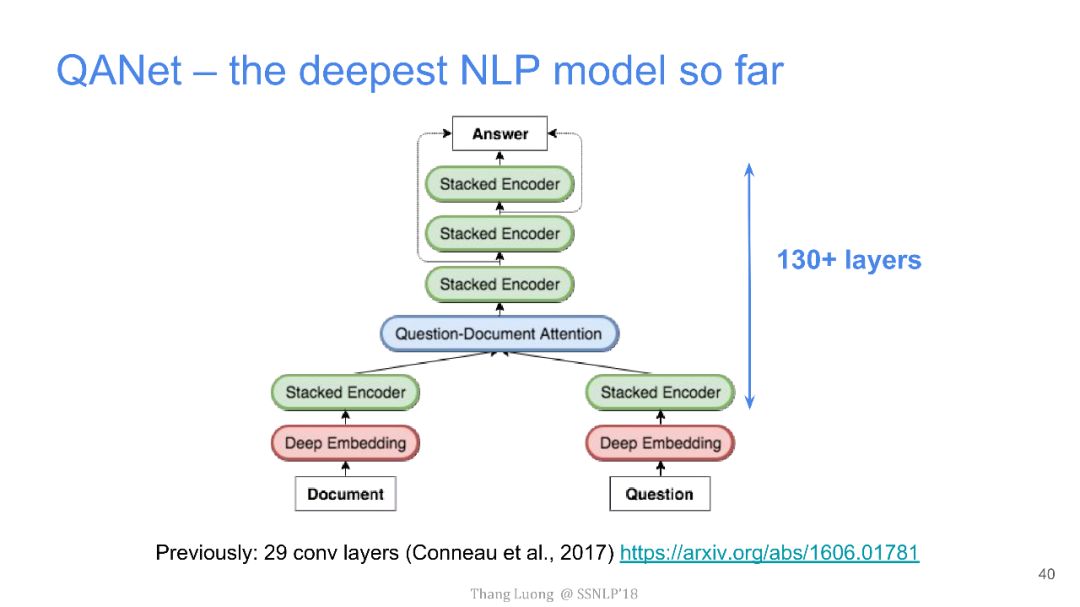 【导读】四月份来自卡内基梅隆大学和谷歌大脑的研究者发布了QANet论文,并发表在ICLR2018上,旨在提出一种新型问答模型。该模型中去除了其他问答模型中的RNN部分,仅使用卷积和自注意力机制,便达到了超越目前最优模型的效果,并使用此模型获得了阅读理解SQuAD大赛的冠军。本文来自谷歌大脑发布的最新介绍,详细介绍了该模型中的技术细节,现由专知团队整理出来,以飨读者。