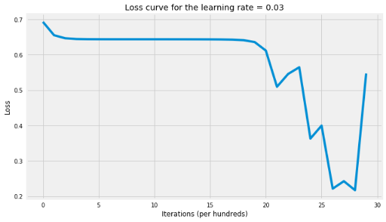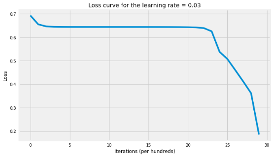 parameters_tanh = L_layer_model( X_train, y_train, layers_dims, learning_rate=0.03,