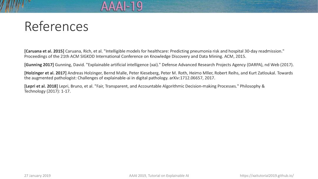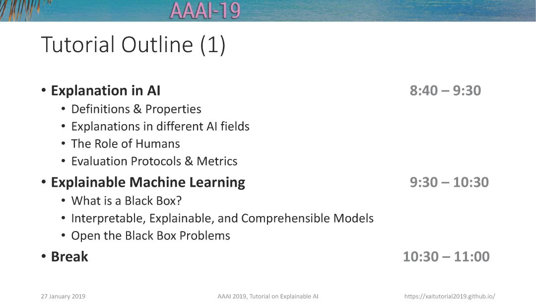 AAAI 2019 tutorial: 可解释AI –从理论到动机,应用和局限性