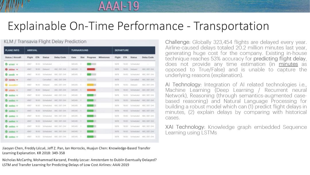 我们展示了应用解释技术的真实示例。我们关注一些使用案例:i)具有内置解释功能的可解释的航班延误预测系统; ii)基于知识图的语义推理,预测和解释企业项目风险层次的大范围合同管理系统;iii) 500多个城市的大型组织员工异常报销的识别、解释和预测的费用体系。