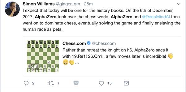 Simon 表示:希望这一天会被载入史册。在2017年12月6日,AlphaZero统治了象棋届。