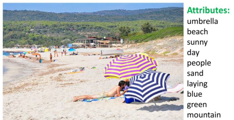 测试集图像的属性的生成:可以看成是一个多标签分类问题,建立每个属性与图像的区域的对应关系。 如一张图片上有“草地”“狗”“球”等,哪些地方是草地,哪些地方是狗等等。