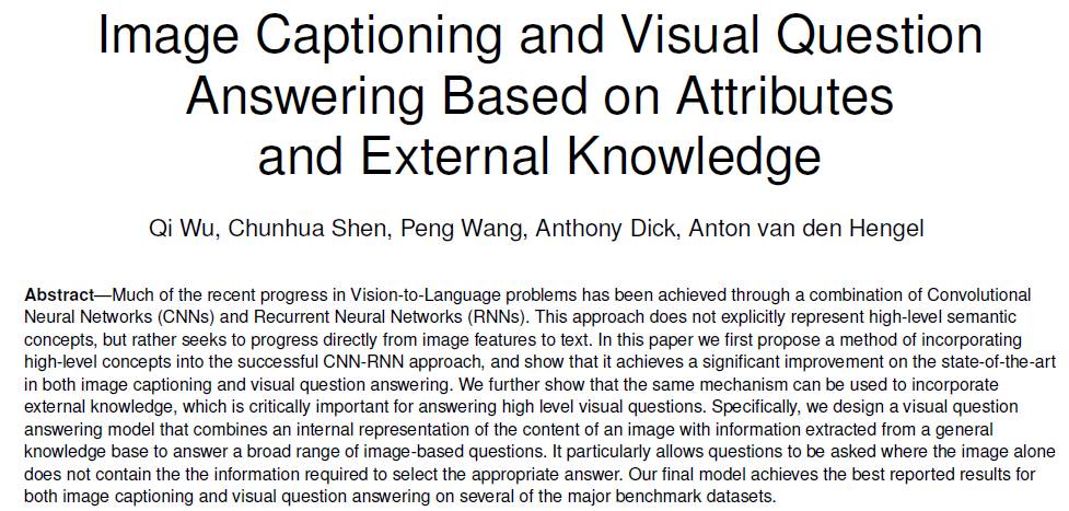论文:Image Captioning and Visual Question Answering Based on Attributes and External Knowledge