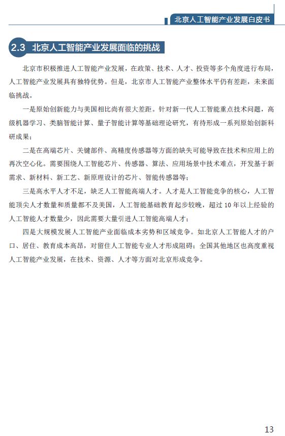 2.3 北京人工智能产业发展面临的挑战 13
