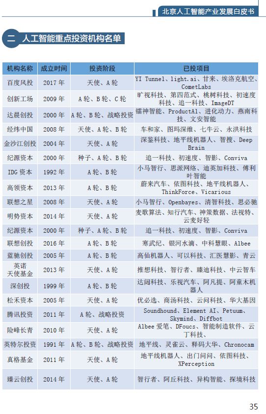 (二)人工智能重点投资机构名单 35