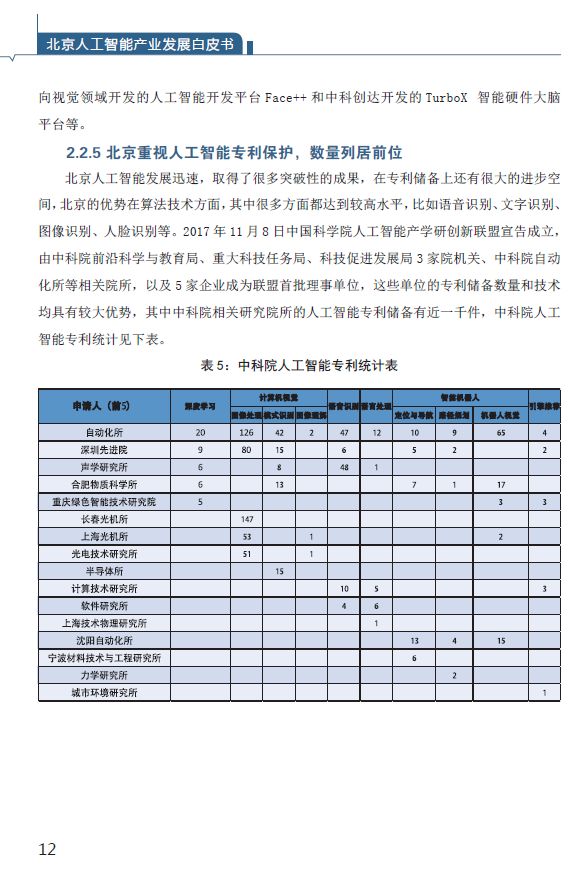 2.2.5 北京重视人工智能专利保护,数量列居前位 12