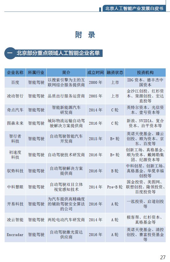 (一)北京部分重点领域人工智能企业名单 27