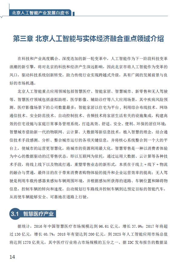 第三章 北京人工智能与实体经济融合重点领域介绍 14