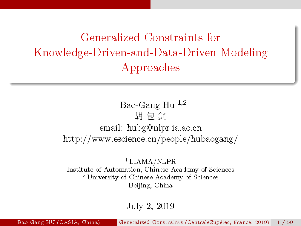 【导读】今天,专知很荣幸邀请到中科院自动化研究所胡包钢研究员分享他最近在法国巴黎萨克雷大学(Université Paris-Saclay)数学与计算机科学交叉实验室 (Mathematics in Interaction with Computer Science,MICS)学术交流的讲稿。该实验室前身来自于巴黎工程师大学应用数学实验室。
