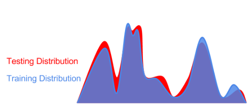 The fact that we don’t know the testing distribution ahead of time presents some difficulties for optimization. If we are too aggressive in optimizing the training landscape (the sharp global minima on the left of the blue curve), we end up with a model that is sub-optimal with respect test data (sharp local minima on the red curve). Here, we’ve overfit to the training distribution or training data samples, and failed to generalize to the perturbed test distribution.