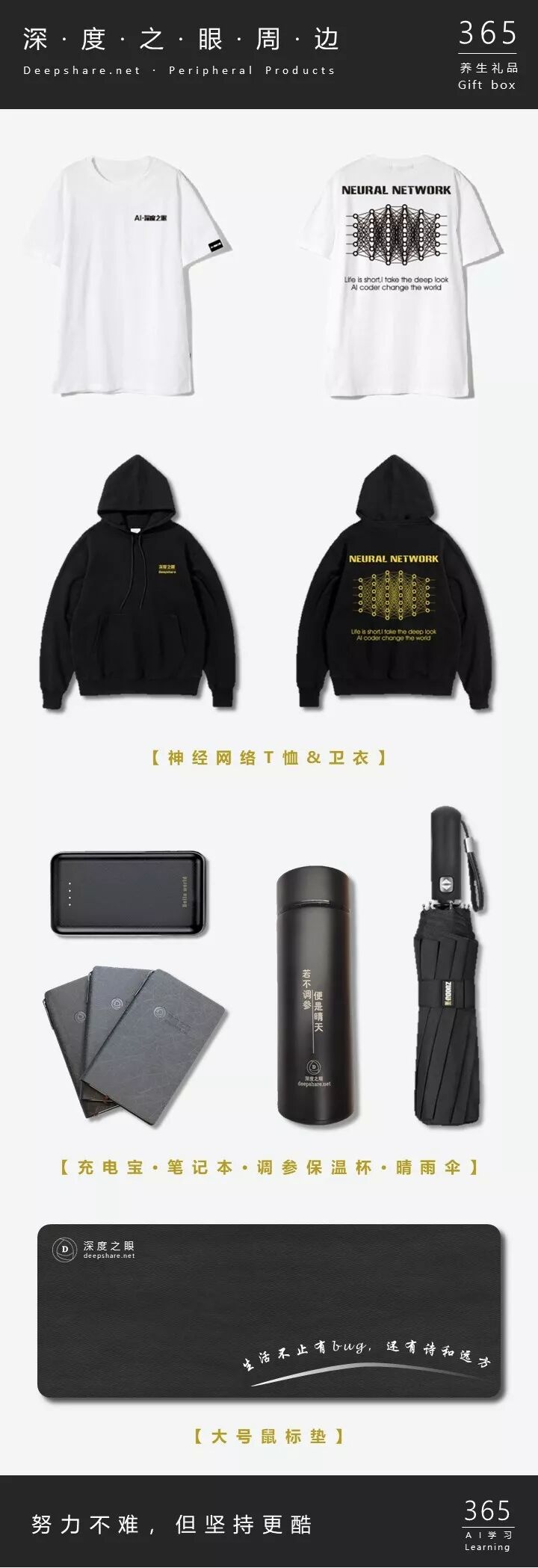 按学习任务要求完成全勤打卡且排名前20的同学,我们将赠送你深度之眼定制周边福利!(训练营采取的积分机制,打卡、老师助教点评、点赞都会有得到相应的积分,凭积分就可以换取相应奖品!)